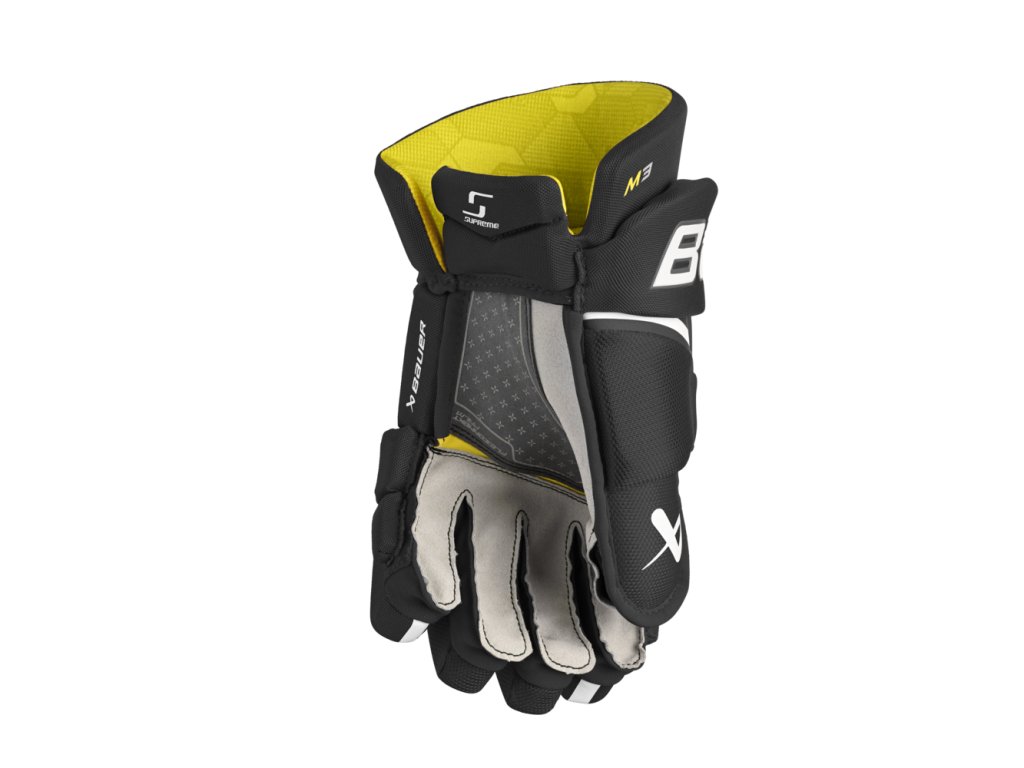 Hokejové rukavice Bauer Supreme M3 jsou základním modelem řady Supreme, určené pro rekreační hokej. Klíčové vlastnosti: prsty ShotBoost Fingers, dvoudílný palec, vnější materiál Poly mesh, dlaň FLEX-CONNECT, vnitřní materiál THERMOMAX